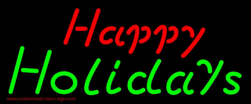 Red Happy Green Holidays Handmade Art Neon Sign