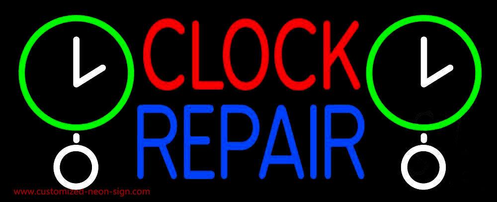 Red Clock Blue Repair Block Handmade Art Neon Sign