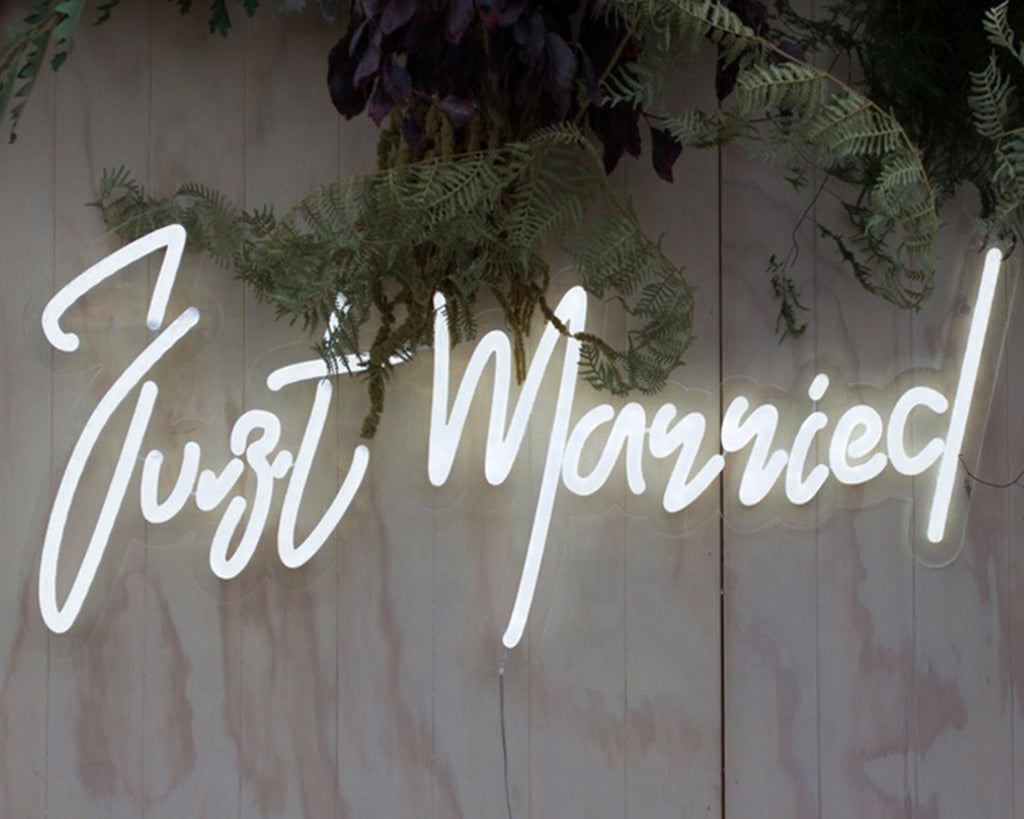just married neon sign for wedding homemade art neon sign