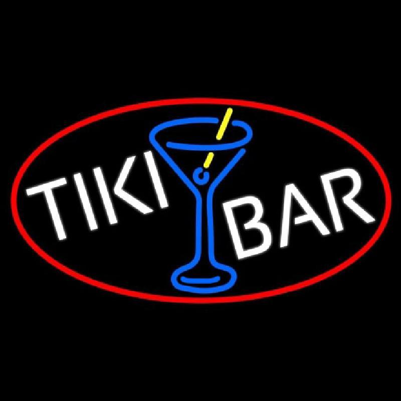 Tiki Bar Wine Glass Oval With Red Border Handmade Art Neon Sign
