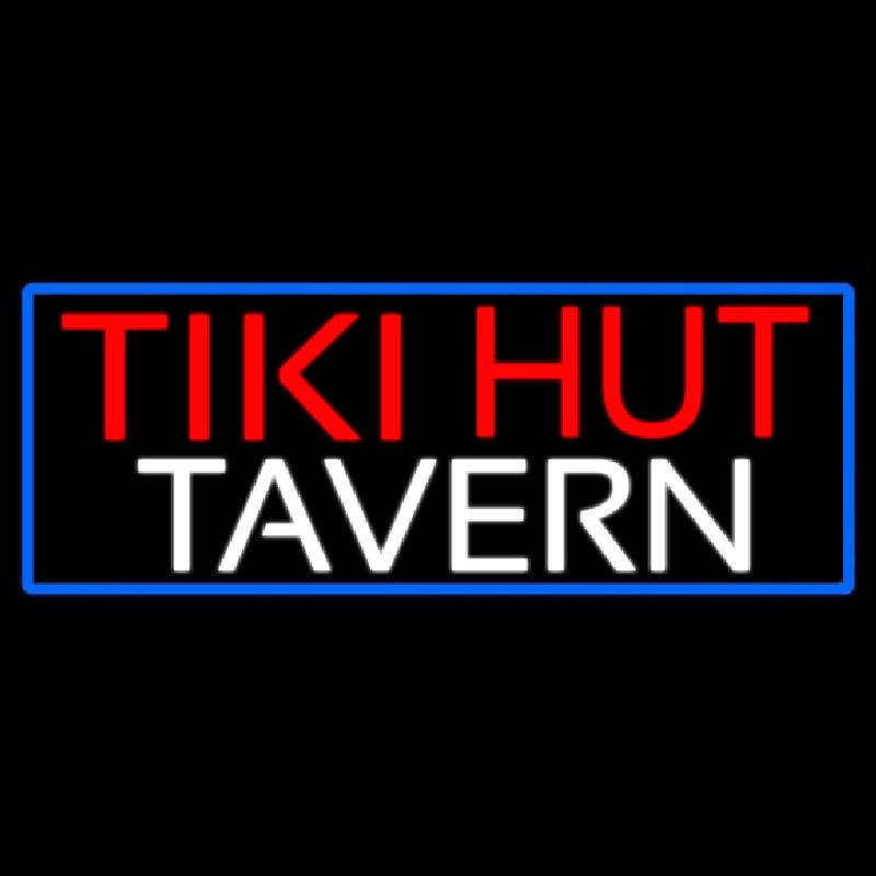 Tiki Hut Tavern With Blue Border Handmade Art Neon Sign