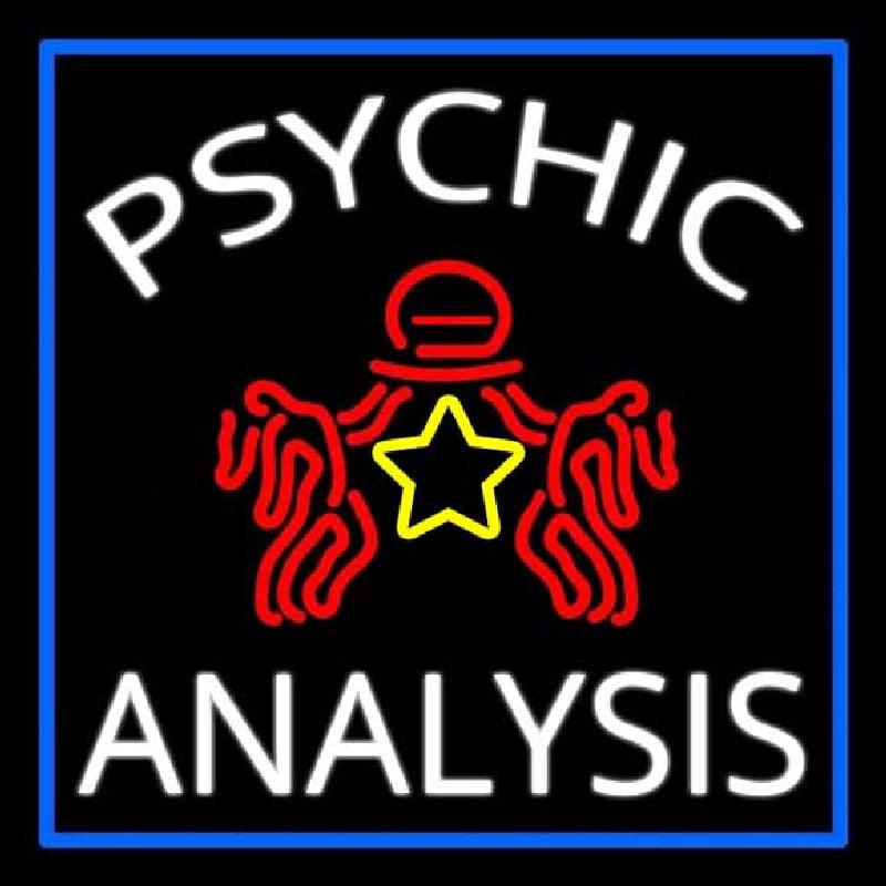 White Psychic Analysis With Logo And Blue Border Handmade Art Neon Sign