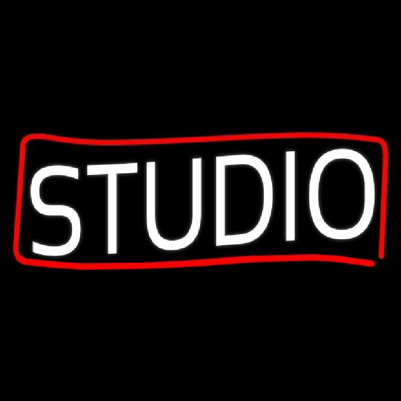 White Studio With Red Border Handmade Art Neon Sign