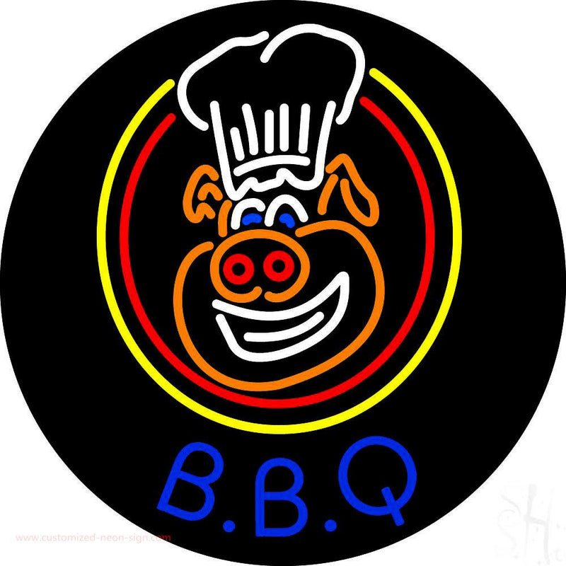 Blue BBQ Pig Logo Neon Sign