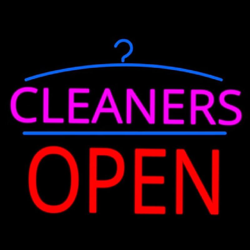 Pink Cleaners Block Red Open Logo Handmade Art Neon Sign