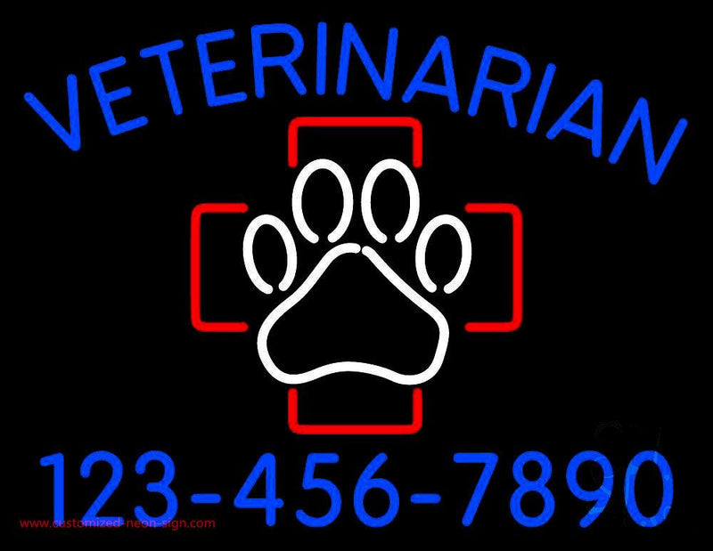Veterinarian With Phone Number Handmade Art Neon Sign