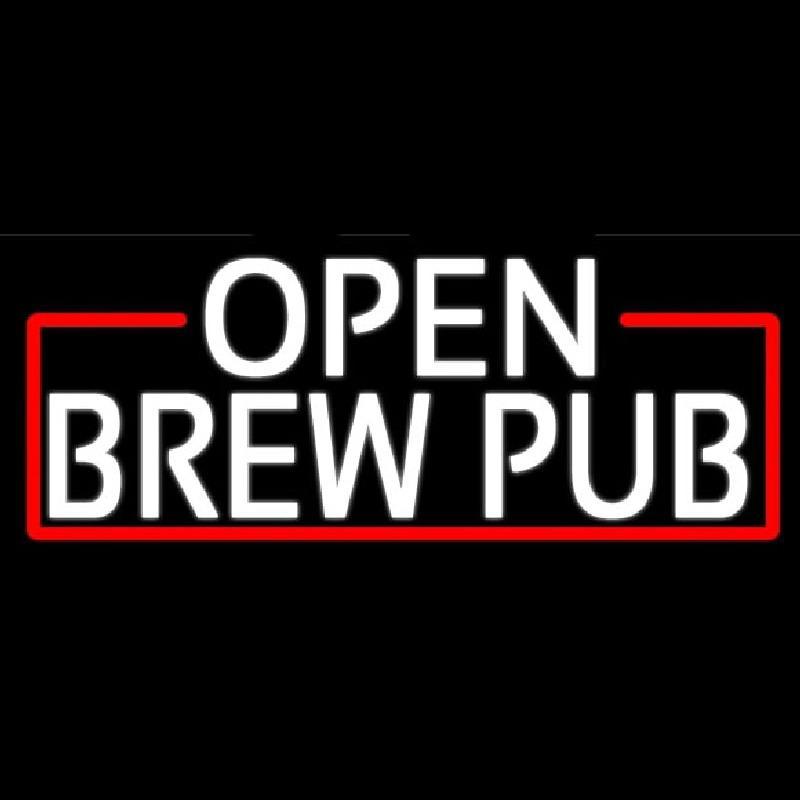 White Open Brew Pub With Red Border Handmade Art Neon Sign