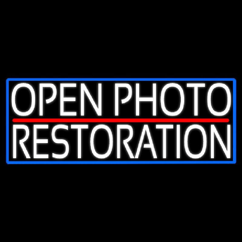 White Open Photo Restoration With Blue Border Handmade Art Neon Sign