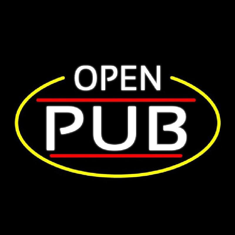 White Open Pub Oval With Yellow Border Handmade Art Neon Sign