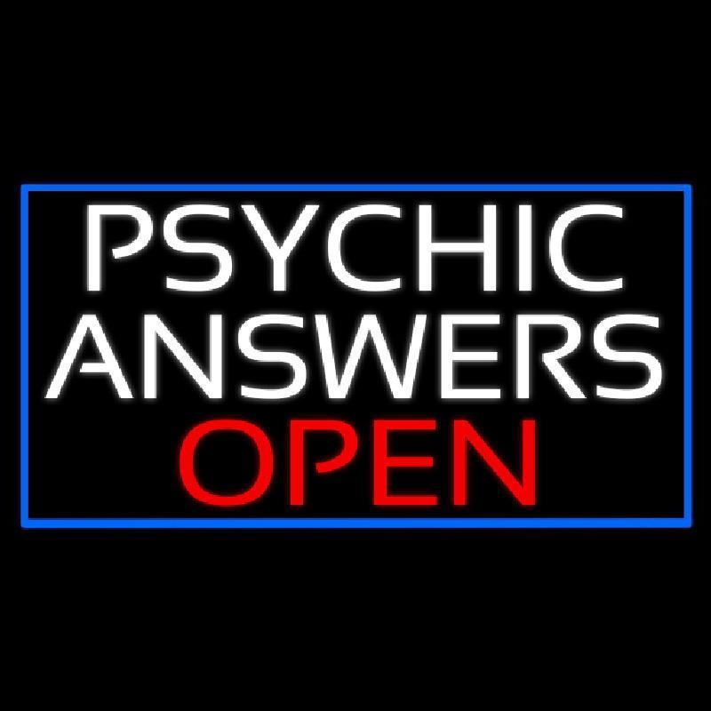 White Psychic Answers Red Open Blue Border Handmade Art Neon Sign